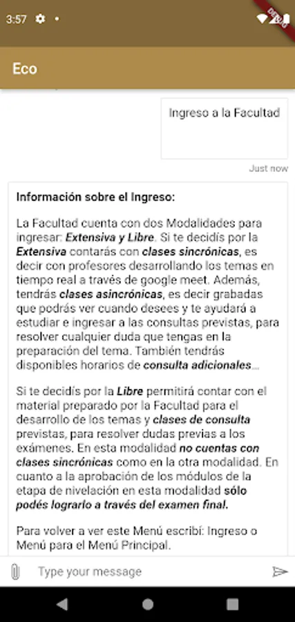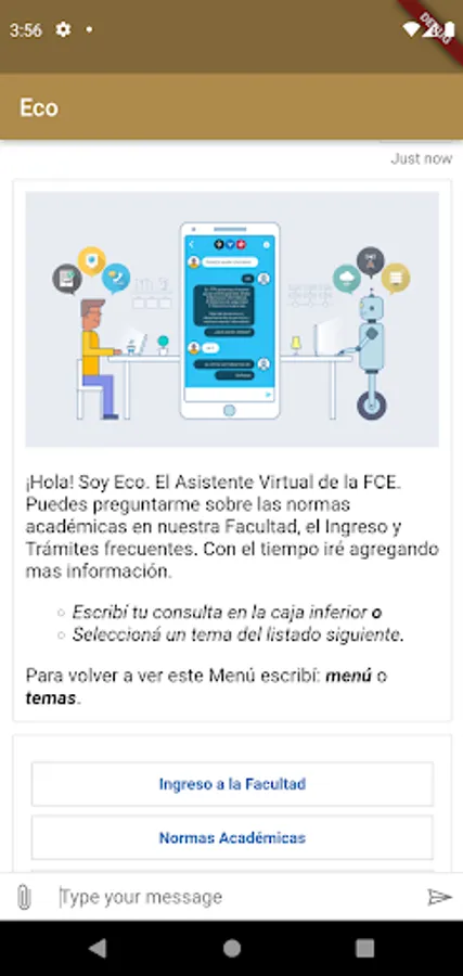 Virtual Assistant who guides the students of the Faculty of Economic Sciences of the National University of Cuyo in different topics. It answers frequently asked questions regarding Admission to the Faculty, Academic Issues and Frequent Procedures.
