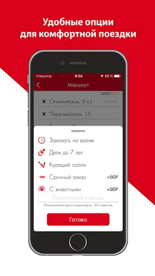 When ordering a taxi in the application, you can choose a convenient tariff for you: economy taxi, taxi comfort and taxi business. You can indicate in your wishes that a child up to 7 years old will travel with you, the car will arrive with a child seat (the option is free). In the comments you can indicate additional wishes for the trip.