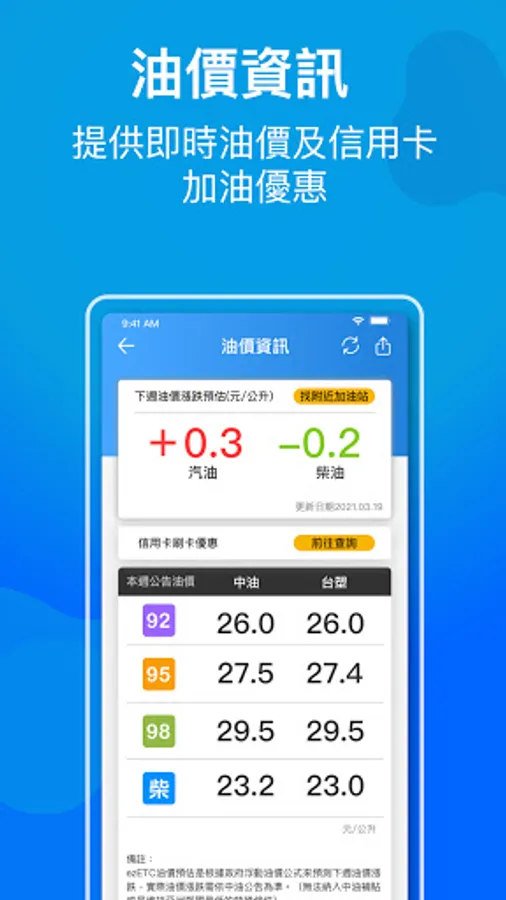 ◎ Oil price information: Complete the latest prices of various oil products of PetroChina and Formosa Plastics, as well as future oil price forecasts.