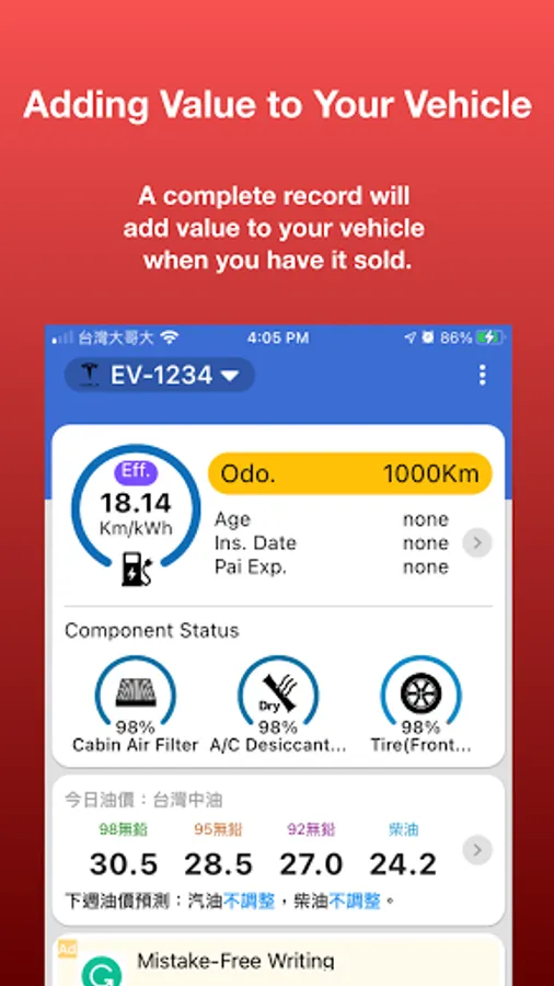 Fuel economy, maintenance, fueling, and expenses can be recorded through the webpage (http://iknow99.com) and the cell phone; as the cell phone gets connected to the internet, the data will be synchronized automatically to spare users the trouble of backup.