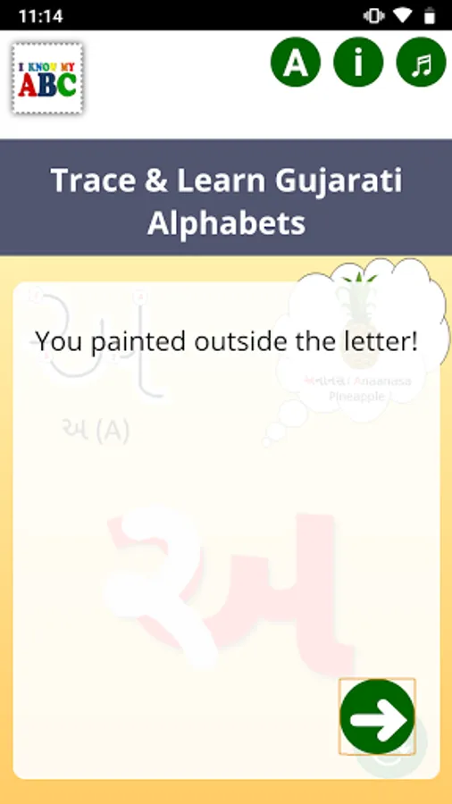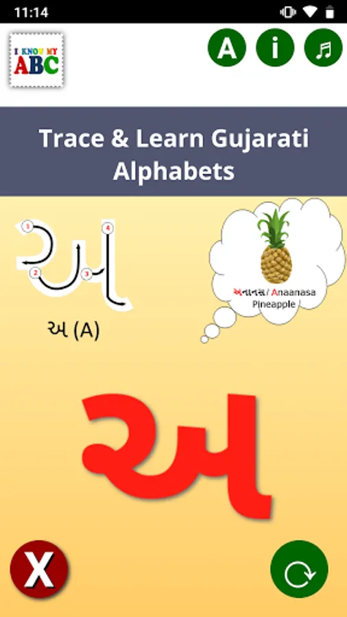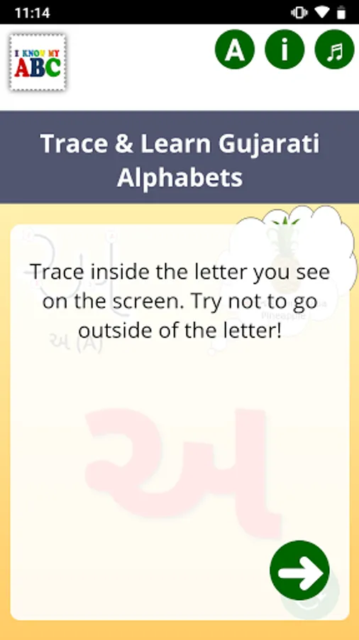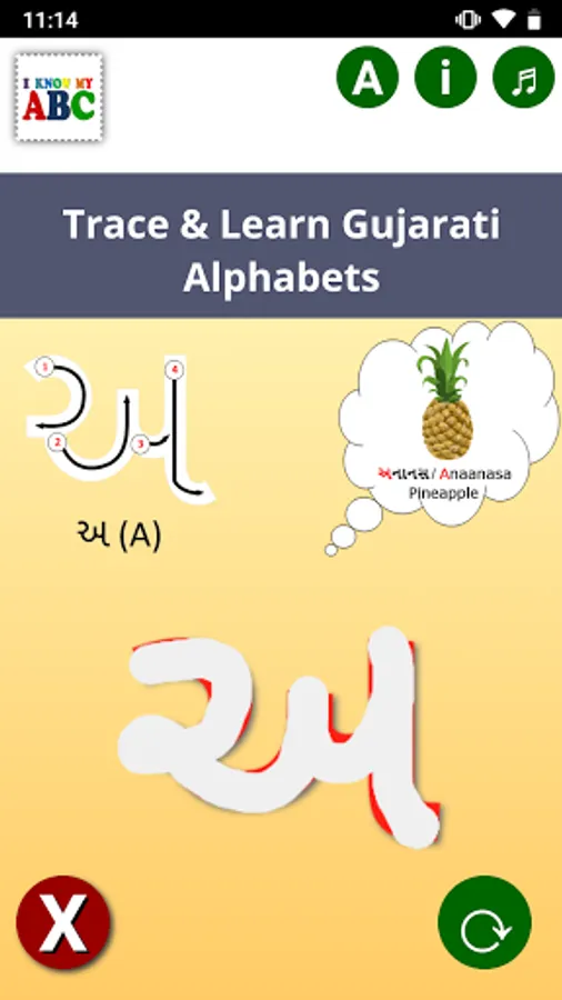 This app is aimed to make learning fun and easy for first time learner by providing step by step instructions with guided arrows, bilingual words, pronunciation and pictures of associated objects for each alphabet.
