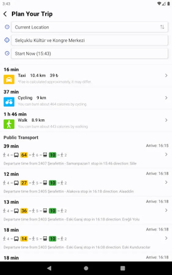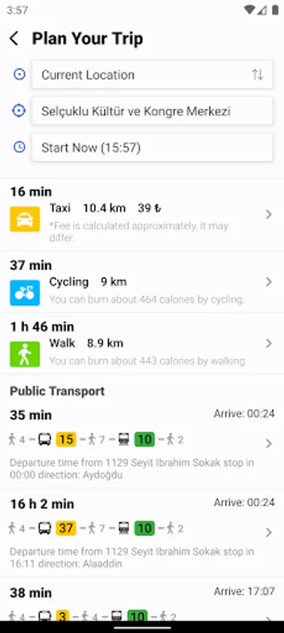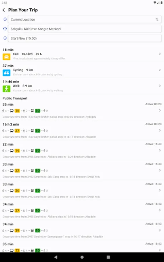 Instantly view all transportation options, including buses, trams, and bicycles.