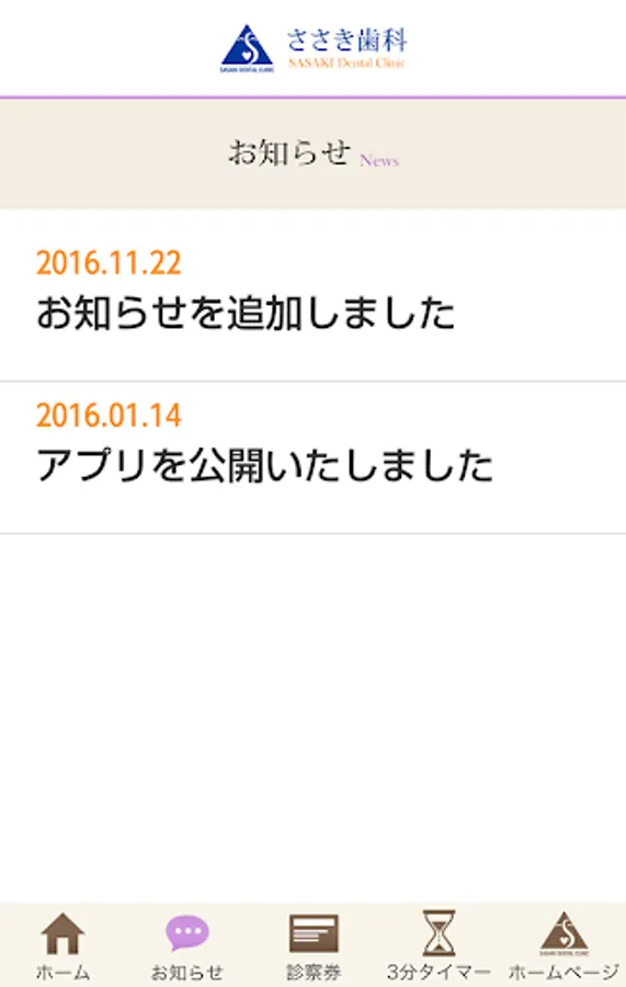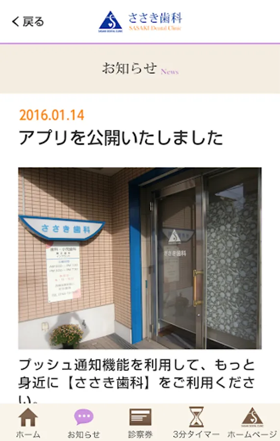 In this app, you can quickly deliver the latest information of [Sasaki Dental],