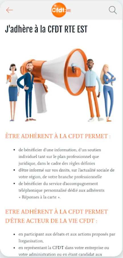 • The possibility of joining the CFDT and joining a committed and dynamic community. Membership is confidential.