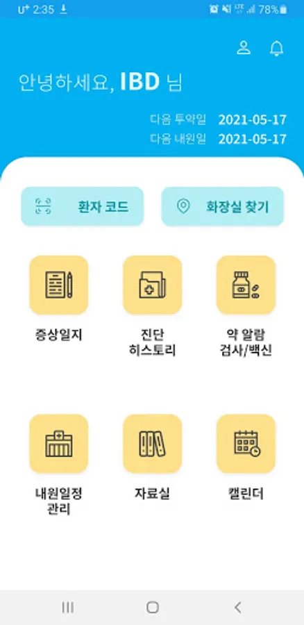 IBD Friends is an app created by the Korean Society of Intestinal Research for inflammatory growth disease patients. Crohn's disease (CD) and ulcerative colitis (UC) patients can record their symptoms daily through the app, manage medication alarms, and share their symptoms log with the doctor.