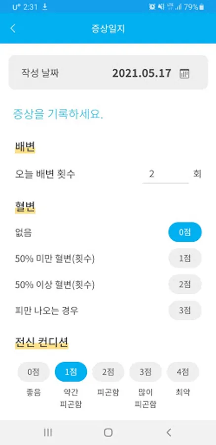 ○ Symptom Log: You can record your symptoms every day and check them by score. Recorded symptom diaries may be provided to the doctor for viewing at the time of treatment.