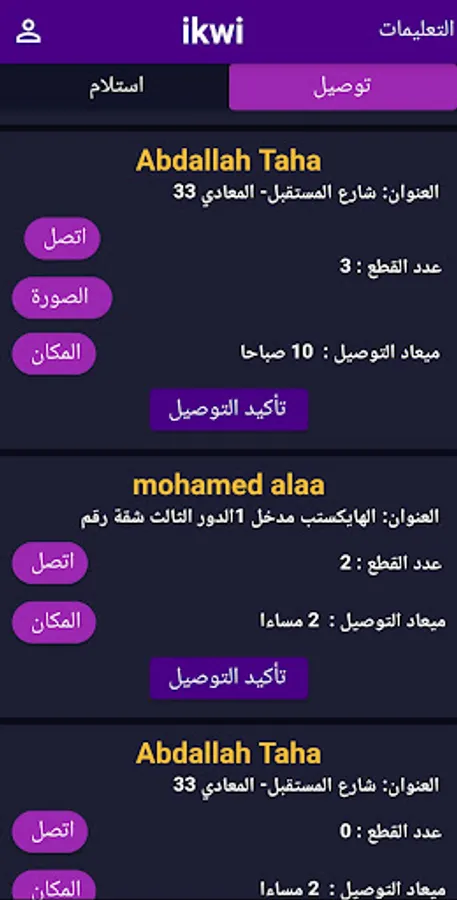You will find a list of your pick-up and delivery requests
