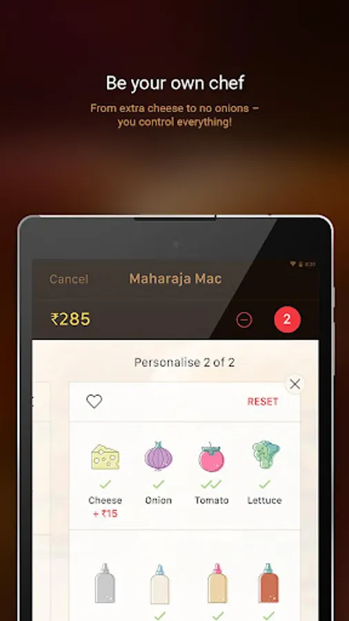 You can quickly customise your order as per your personal preferences. Whether it's an option of bun for any of the listed McDonald's burgers, add-ons such as cheese, veggies, or a choice of beverage, sides, and desserts, you will be able to customise effortlessly.