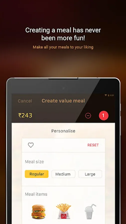 Placing orders from the McDelivery app is simple, safe, and convenient. Now your favourite McDonald’s items are just a few taps away. Be it McAloo Tikki, McChicken, Cappuccino, Fries, McNuggets, or anything else that is there on the menu list, just tap on the item, customise & add it to your cart, make the payment, and there you go. Indulge in your favourite McDonald’s food on any day you wish.