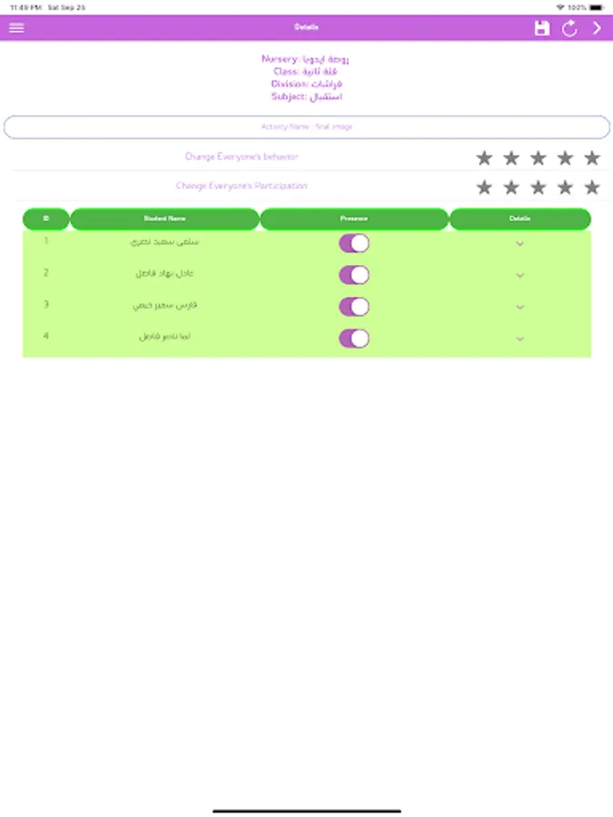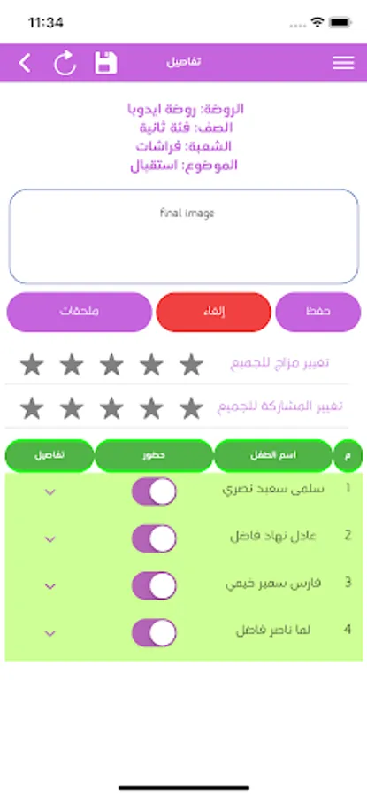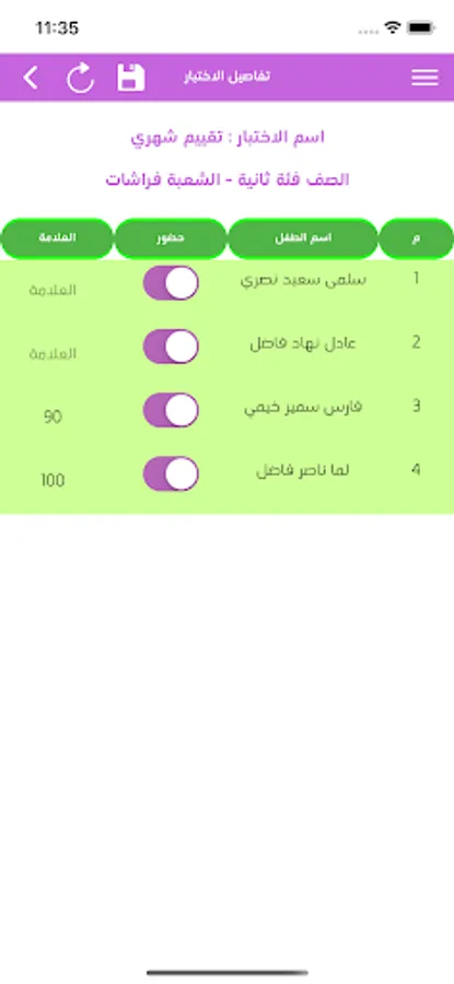 It is possible to work on the application as a parent or teacher for the child, and it enables the parents to know the activities and skills that the child receives in the kindergarten and track his whereabouts while traveling on the kindergarten bus.