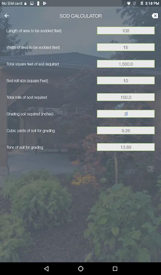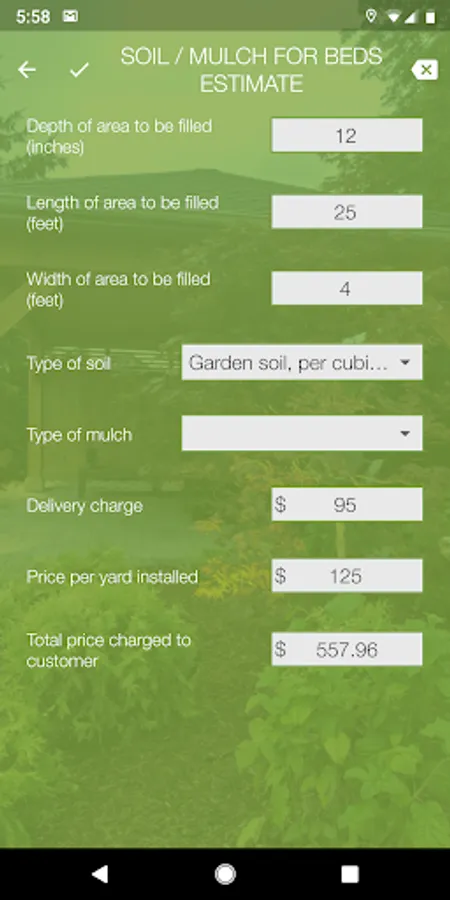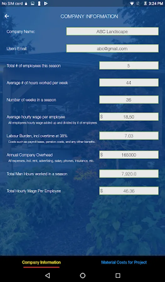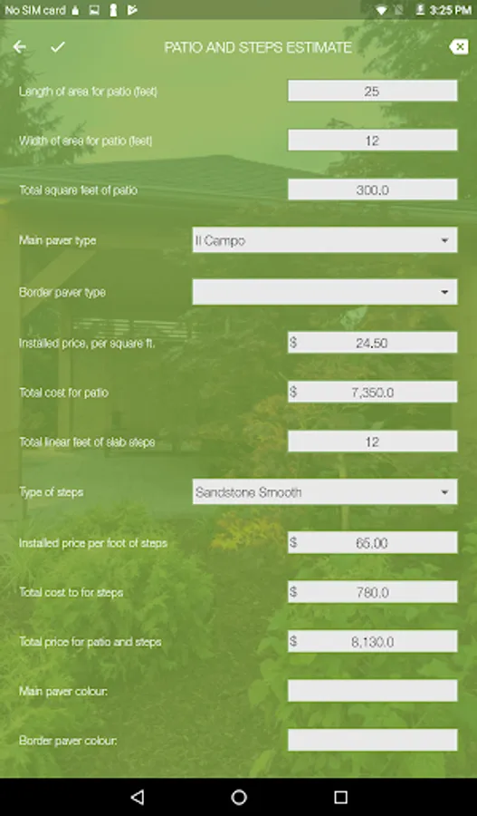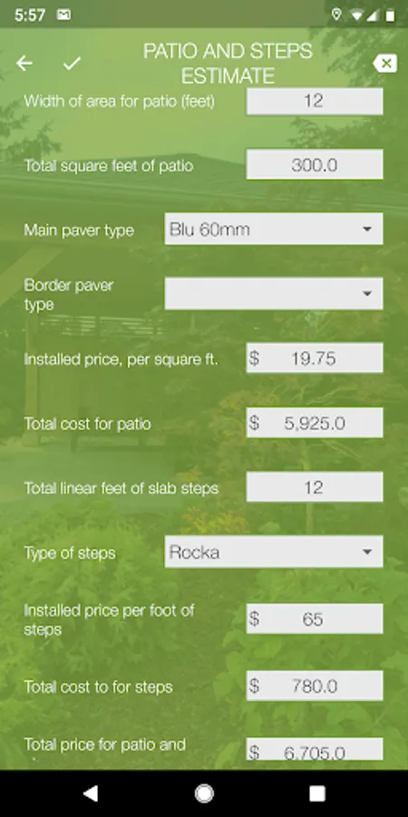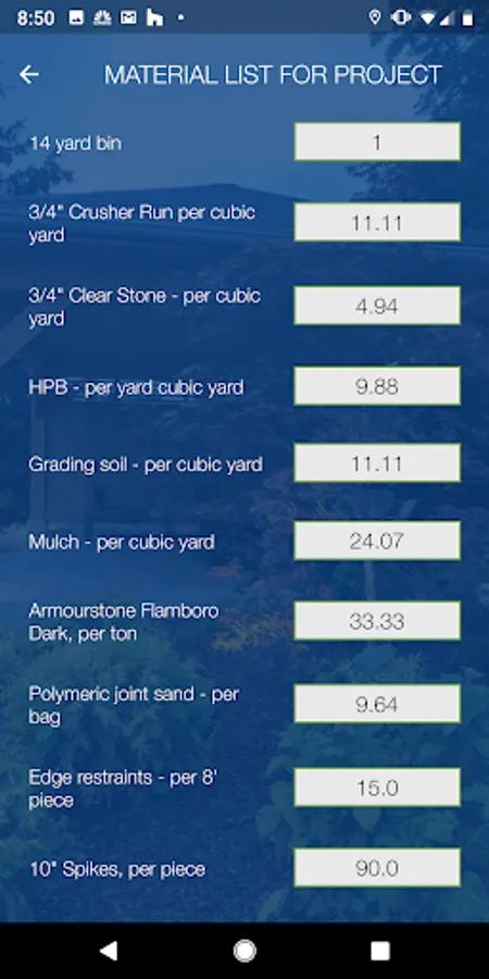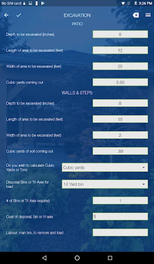 The second section allows you to calculate everything from excavation, disposal, materials and man hours for each part of a large landscape project.