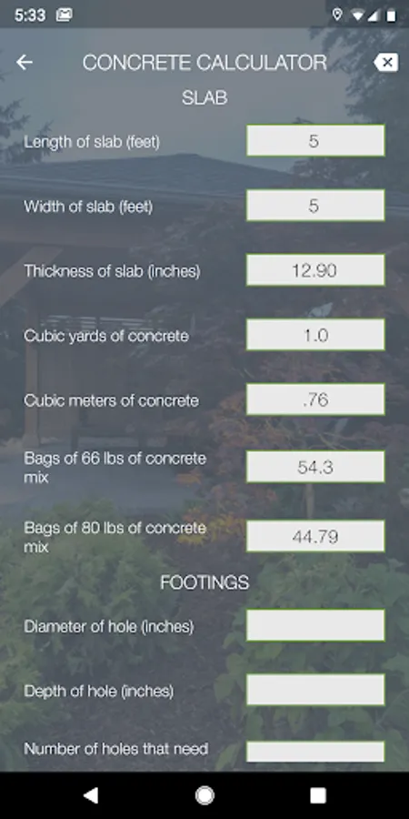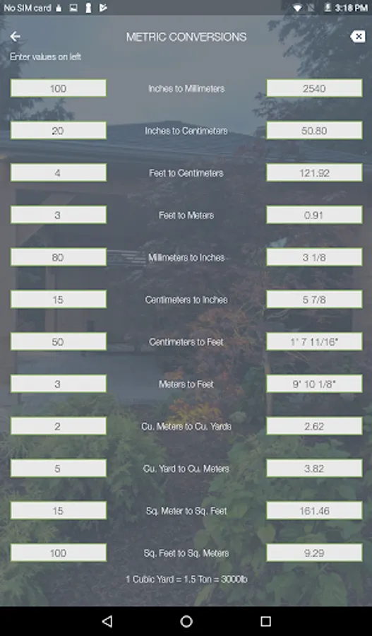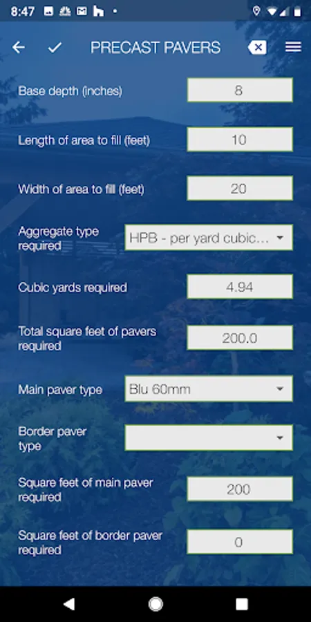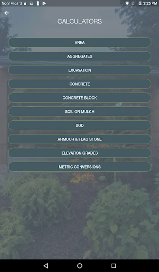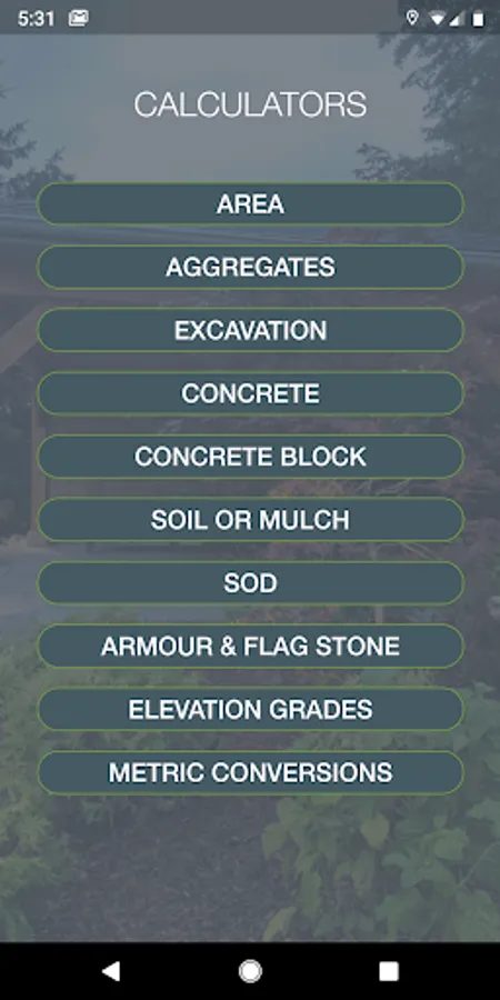 The last section is a great materials calculator all in one place for users to quickly calculate any number of materials or areas for a site. For example, calculate areas, quantity of aggregates, excavation material coming out, concrete, soil and mulch as well as handy metric conversions section.