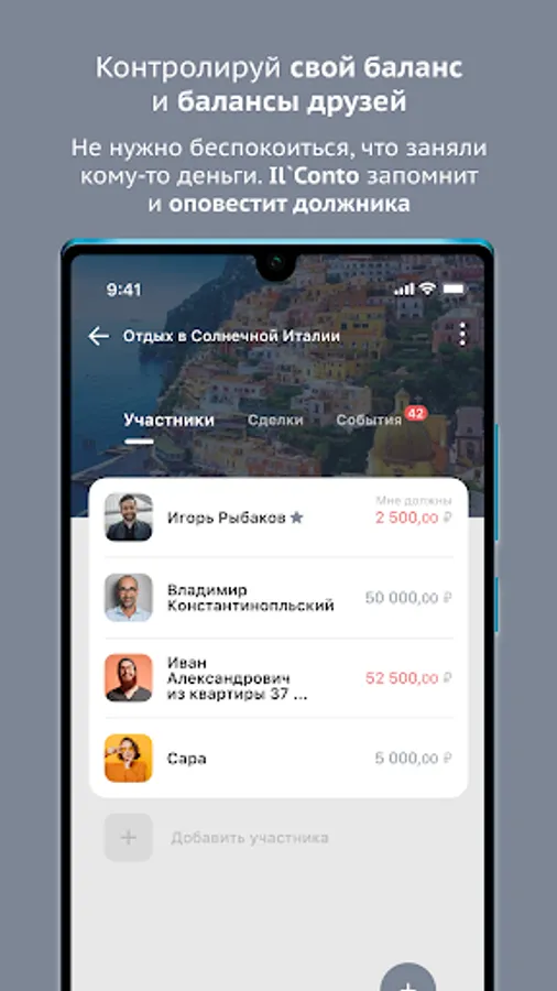 There is no need to count, memorize, write in tables, remind of debts ... Calculation and management of joint expenses will become simple and transparent.