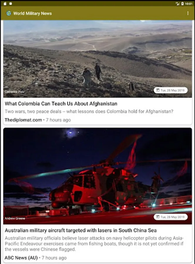 World Military News Is a Defence and Military News aggregator which gets you the Military News update from across the world . Enough Military/Defence news to keep you engaged for hours . Locate specific country news from the pop up menu once you are done with the main feed .