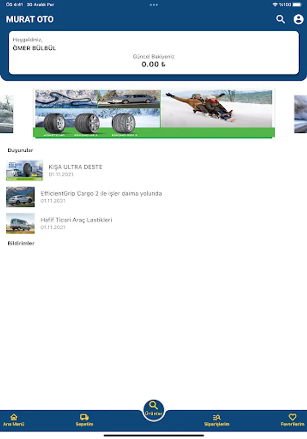 With our Murat Oto Lastik mobile application, our dealers will now be able to quickly make order and payment transactions from their mobile phones.