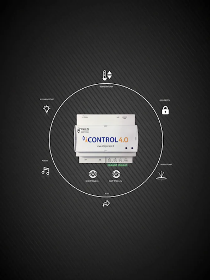 VIVALDI GIOVE iCONTROLight is a multiprotocol device of VIVALDIGROUP (Venice - Italy) for the supervision and the control of the VIVALDIGROUP audio-video multiroom systems, of the GIOVE FREENET remote controls and of the Home Cinema Vivaldi systems.