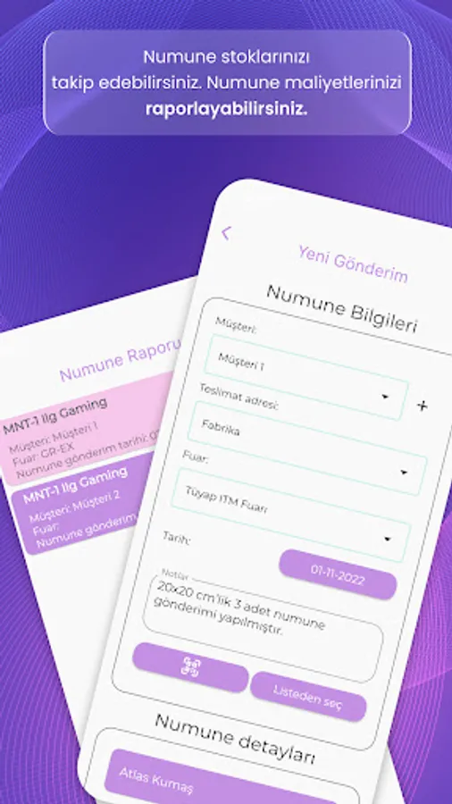 This Turkish CRM program; It will make your job much easier to follow the fairs you attend, your customers, your meetings with your customers, your materials, your orders and your sample stocks!