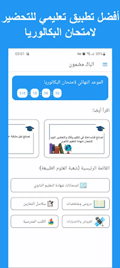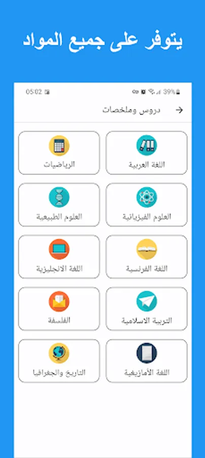 In short, the application of the secondary education certificate (baccalaureate) provides many useful features for students, including lessons, summaries, exams, and textbooks, in addition to the feature of calculating the GPA and creating a special table for revision and questions for the memorization test in the social subject. This app is a powerful tool for students in helping them achieve success in their baccalaureate exam.