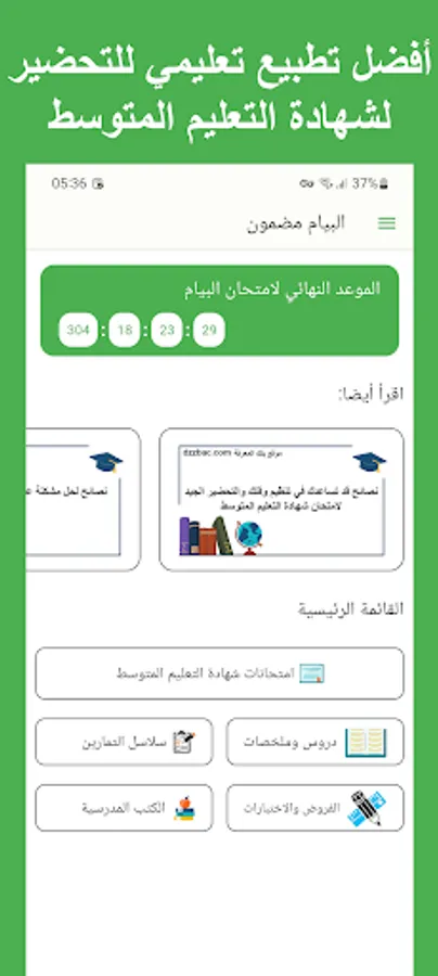 تطبيق شهادة التعليم المتوسط (BEM) تطبيق تعليمي يوفر محتوى شامل ومتنوع لطلاب المرحلة الإعدادية. يحتوي التطبيق على جميع المواد المطروحة في امتحان شهادة التعليم المتوسط.