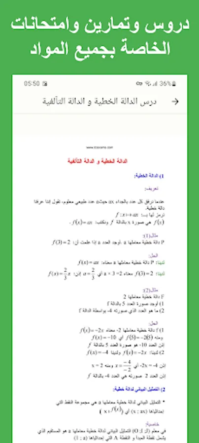 يقدم التطبيق دروساً شاملة وملخصات لكل مادة، مما يساعد الطلاب على فهم المفاهيم الأساسية بشكل سهل وواضح. يوفر أيضاً سلاسل تمارين محلولة ومشروحة لمساعدة الطلاب على تطبيق المهارات والمفاهيم المدروسة.