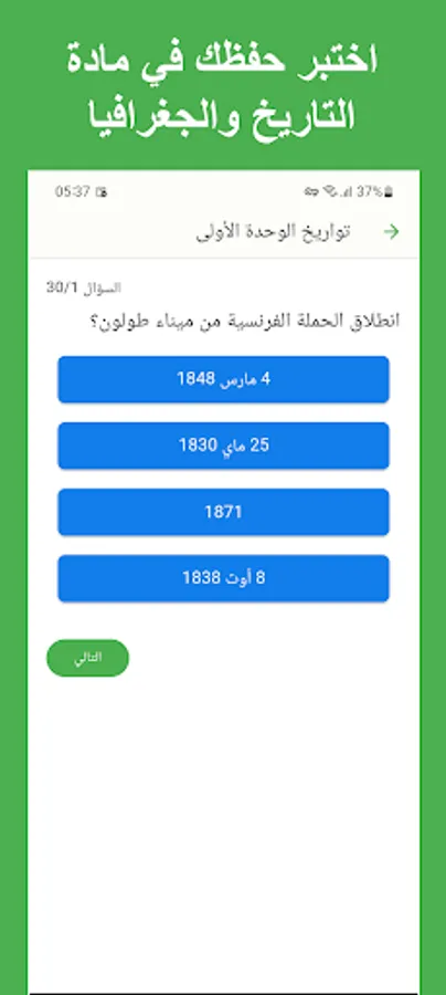 توجد أيضا خاصية اختبار الحفظ في مادتي التاريخ والجغرافيا، حيث يمكن للطلاب ممارسة حفظ الأحداث والموضوعات الرئيسية للمساعدة في استعادة المعلومات بشكل أفضل.