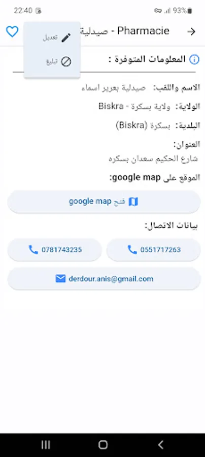 A directory of phone numbers and addresses of doctors in all states of Algeria, in addition to hospitals, pharmacies, medical laboratories, and even phone numbers of blood donors, is a free service that helps communication between Algerian doctors and patients. The application of the Algerian Doctors Directory allows easy communication between doctors and patients.