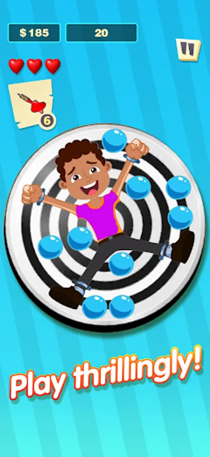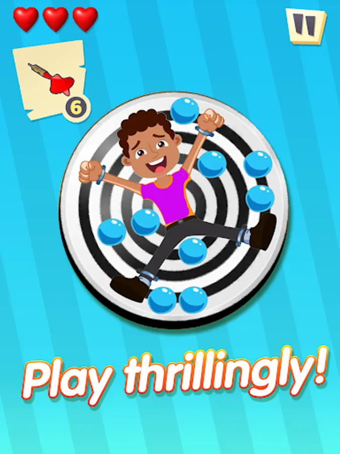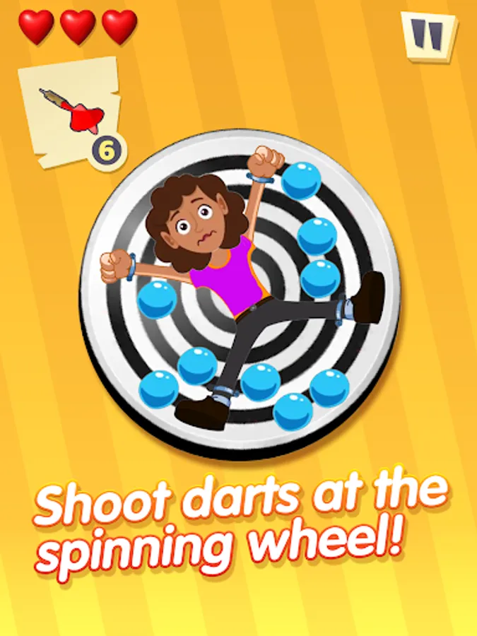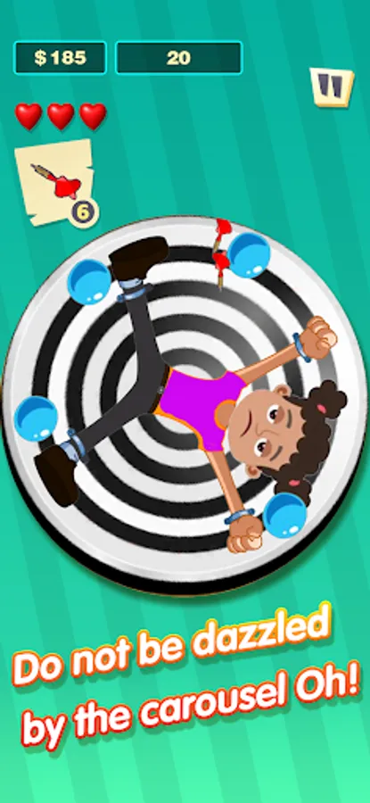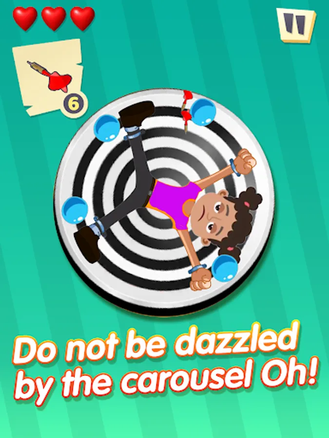 When the turntable starts to turn, find the right time to throw darts to break all the balloons and you will win. Be careful not to throw darts that hurt the hostages, otherwise the game will fail!