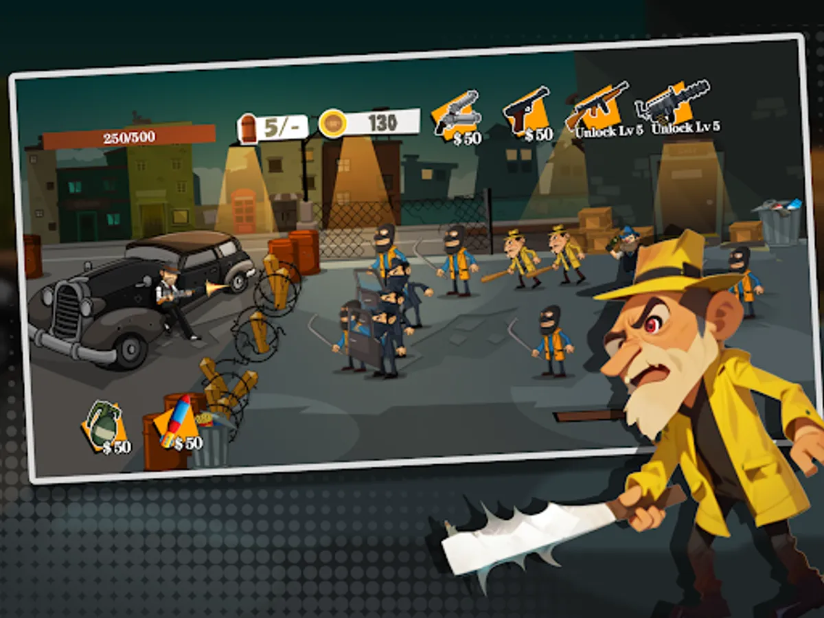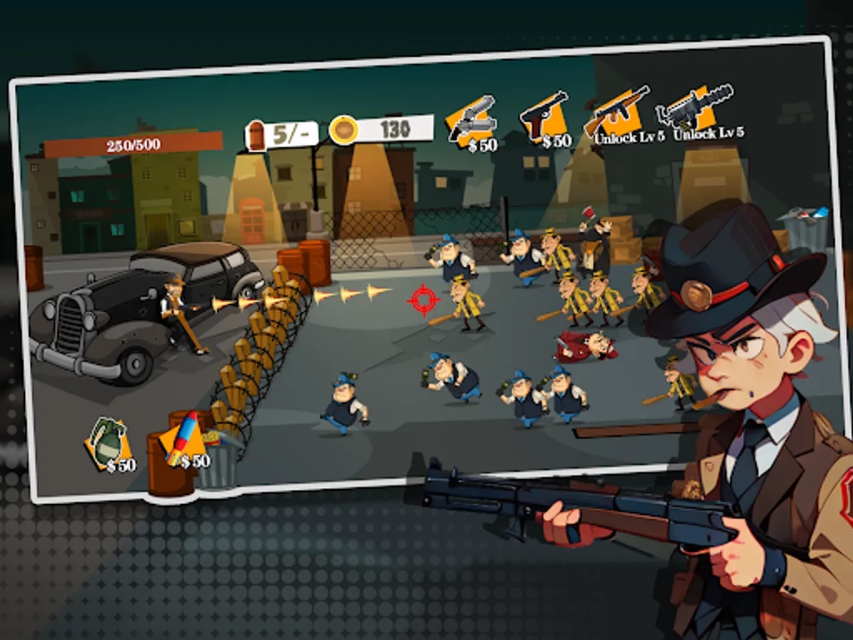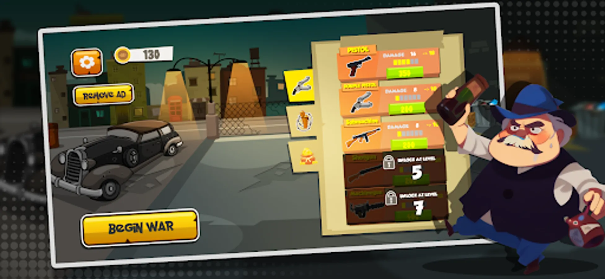 The story takes place in the city of W, where a group of gangsters have been wreaking havoc. They are numerous and well-armed, but as the embodiment of justice, you decide to take them on single-handedly. Because you don't have enough money to buy weapons, you start off carrying only a handgun. In the battles against the gangsters, you earn money by constantly killing them. With the money you earn, you can purchase more weapons such as dual-wield pistols, shotguns, submachine guns, machine guns, bombs, and rocket launchers. Eventually, through your efforts, you eliminate all the gangsters in W city, and the people can once again live peaceful lives. Thank you for your help... Now let's begin our story!