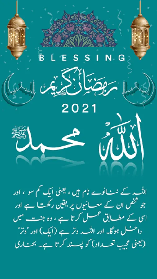 Memorise beautiful 99 names of Allah & Prophet Muhammad (ﷺ) with authentic wazaif for daily life problems. In Islam, Asma ul husna and Asma ul Nabi are of great importance. Muslim must recite and memorize these names in order to get the most benefits out of them. 99 Allah & Nabi Names Wazaif provides complete guideline for Allah names and last Prophet (ﷺ) names and along with that gives meaning and description in English for better understanding.