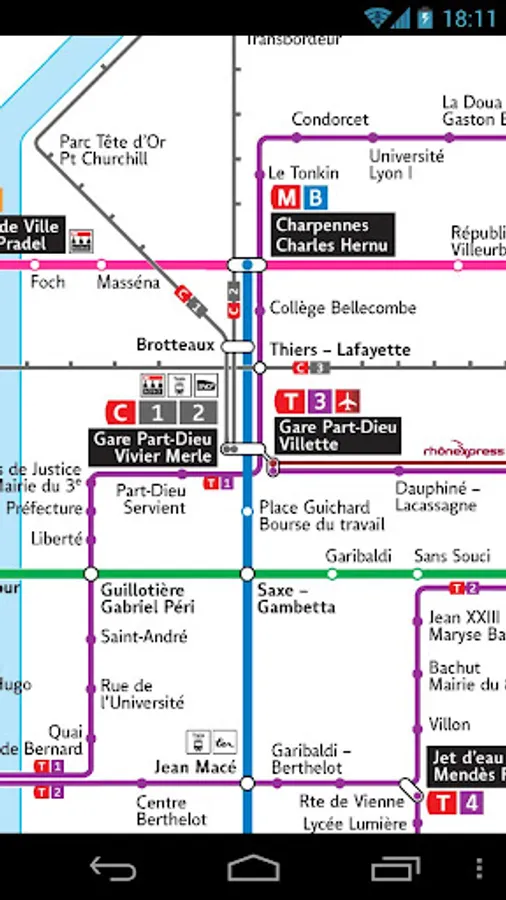 Lyon Metro and Tramway and Trolley - a simple free and offline map of all transport in Lyon, very useful for tourists and visitors.