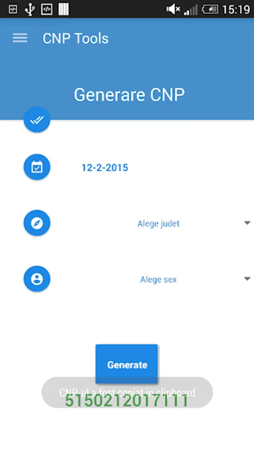 Ca si proof-of-concept a fost implementata si optiunea de generare a unui CNP.
