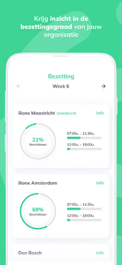 View your weekly schedule in a clear overview and gain insight into the occupancy rate of all locations. Set your profile preferences to book a workplace at your favorite location even faster.