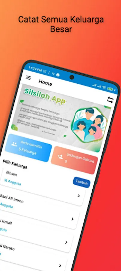 Family tree to record your family tree. You can start from the father, then add grandfather and add children, no need to enter data from the oldest person/our ancestor. You can also invite other people to join and their account data will automatically be connected to the tree you created.