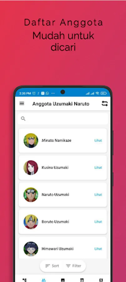 Show all family members. There is a search feature to facilitate the search for members.