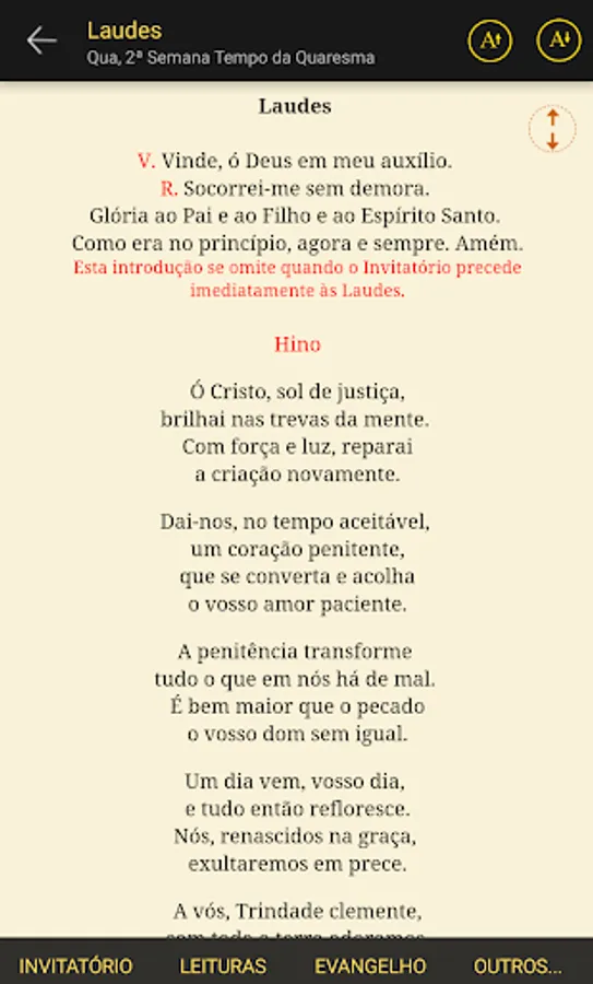 ILiturgia is an application that lets you pray all the canonical hours of the Liturgy of the Hours on your smartphone or tablet, completely offline.