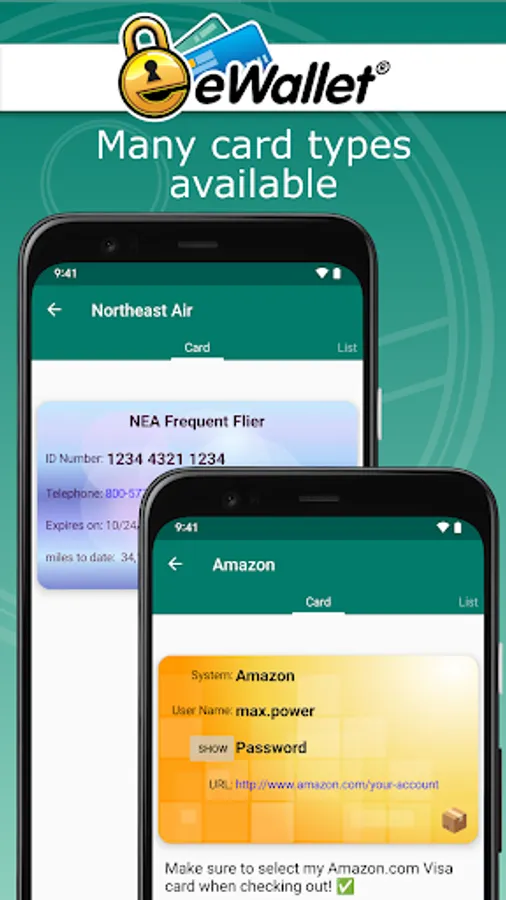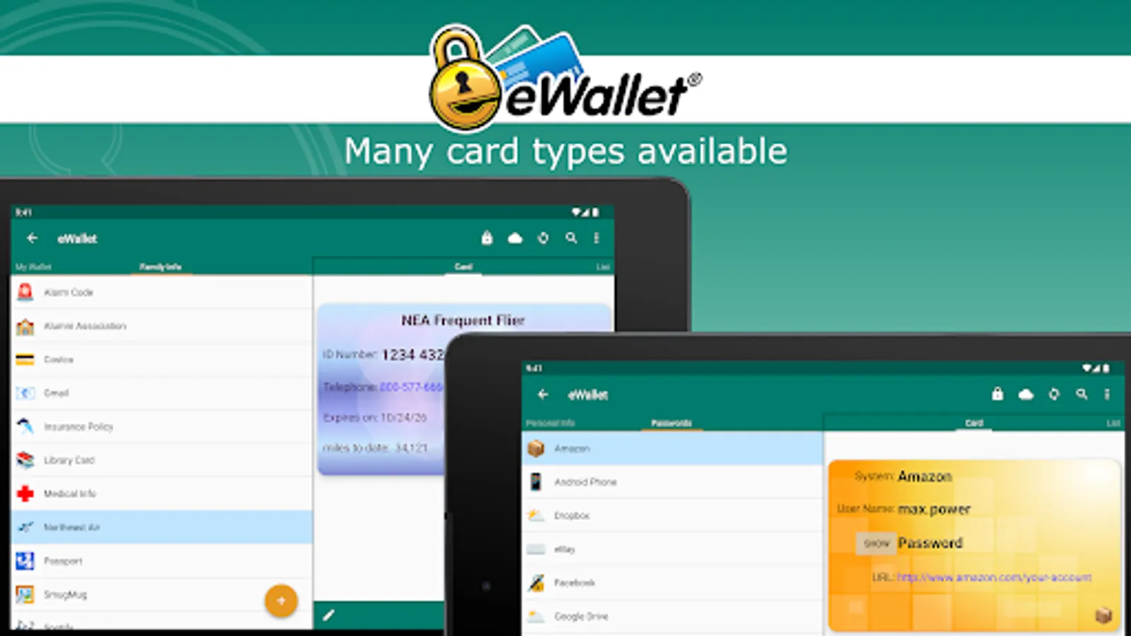 With full cloud or local full Wi-Fi synchronization (and backup) of your secure “wallets” between Android devices and desktop computers using the additional macOS or Windows version (sold separately), eWallet is as convenient as it is strong. Check out its powerhouse features below, and find out more at https://iliumsoft.com/ewallet.