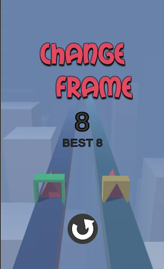 Change Frame is an addictive reflex game . You have to match the shape that is rushing towards you , if you dont match it the shape will crash and you will die . Think quick and act fast to survive .