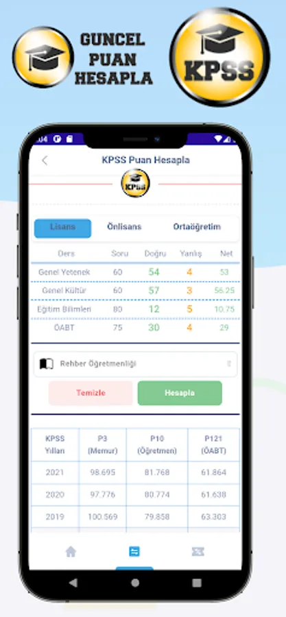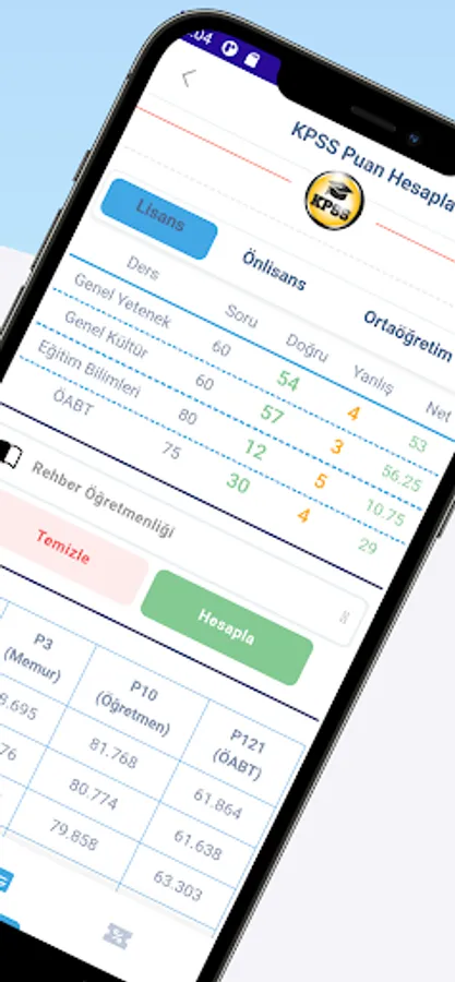 With the Current Score Calculation Application, you can learn your most accurate KPSS, ALES, DGS, TYT, YKS, LGS score.
