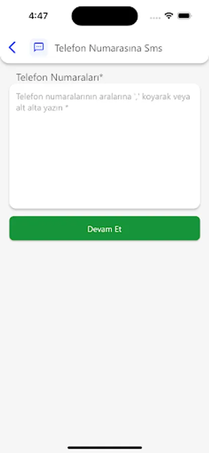 After swiping up the main screen, you can view the basic information about the sms system, the usage of the mobile application and the general questions frequently asked by users, and find the information you need from this section at the bottom.