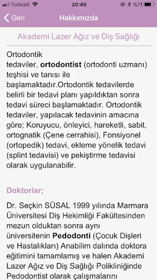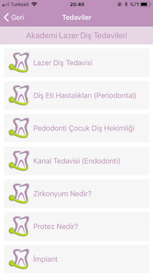 Orthodontics, Zirconium implants, teeth whitening, porcelain dental laminated coatings, Maxillofacial Surgery, Pediatric Dentistry (Children's Dental Health), Root Canal Treatment, Gum Disease, Dental Prosthetics We serve about treatments.