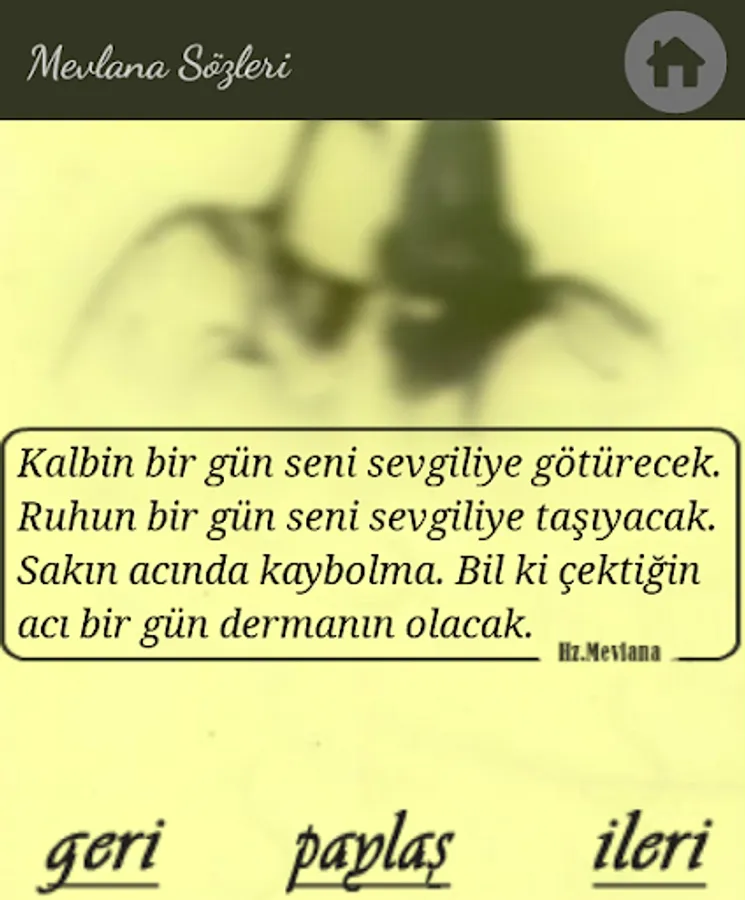 Hz. We have compiled the most beautiful and meaningful words of Mevlana and Şems-i Tabrizi in a single application.