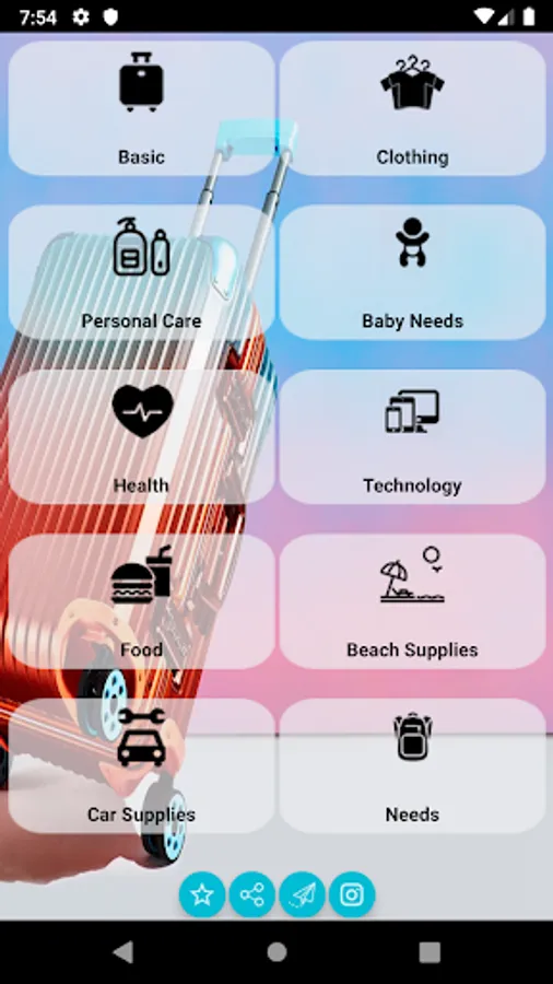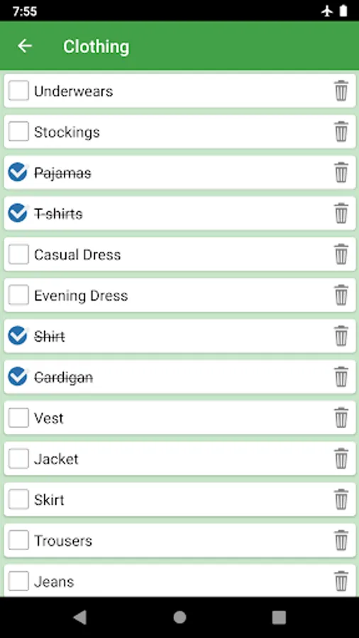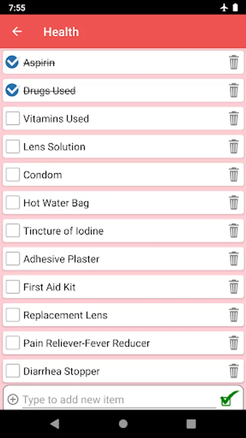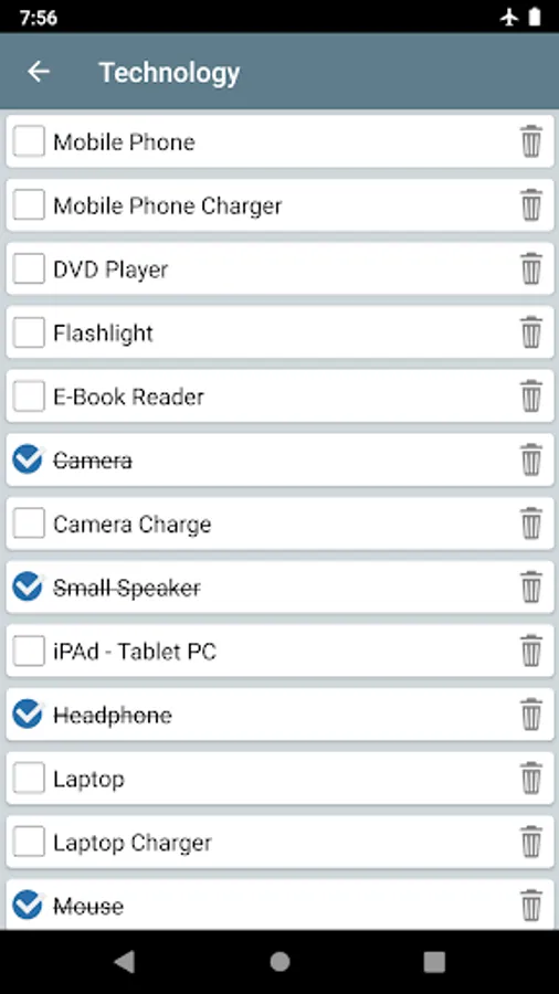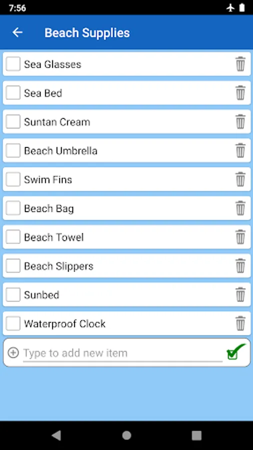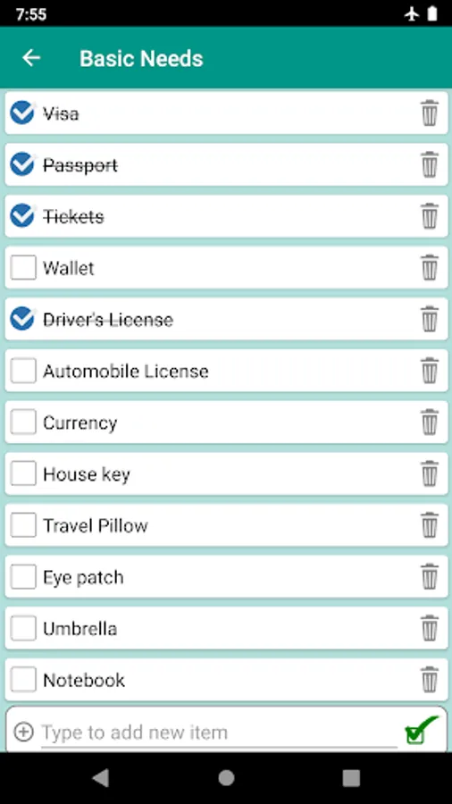 Travel List reminds you of things you should take with you on your travels and lets you chek.