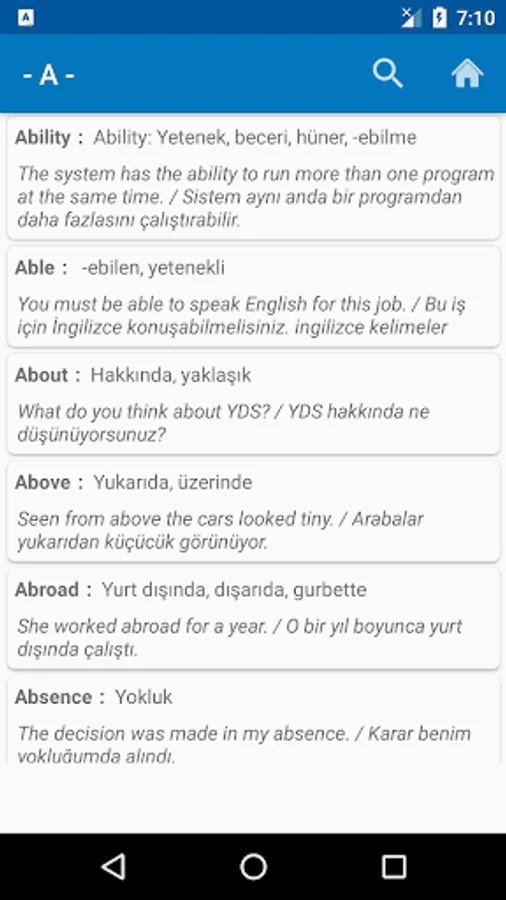 YDS Kelimeler/Örnek Cümleler Screenshots