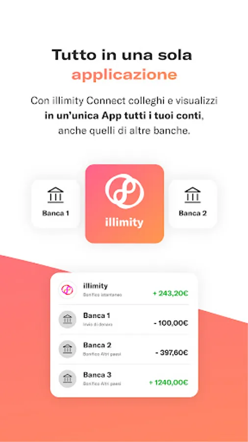 - illimity Connect to connect and view all your banks in a single point and make transfers from each of your accounts without ever leaving the illimity app;