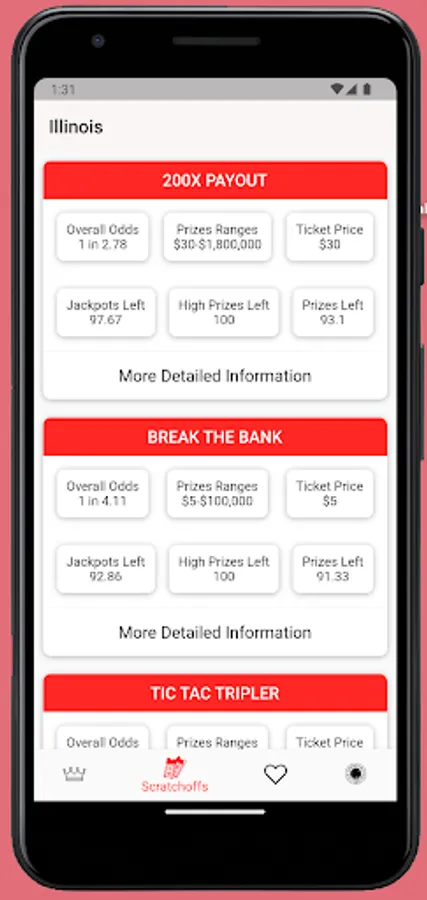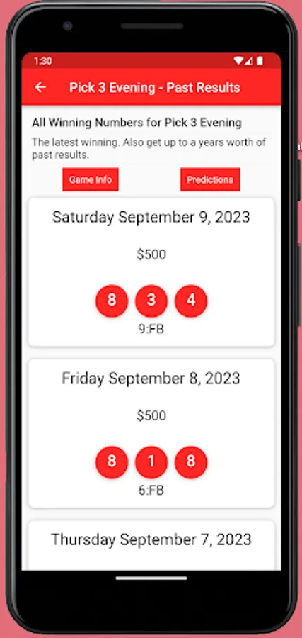 Get the winning lottery numbers for the Illinois Lottery (also known as the IL Lottery). Results for each game are updated every 5 minutes! You can save your favorite numbers, see hot and cold numbers, frequency charts, know how many people won each game, and receive push notifications, or search past results! The app is very simple and easy to use. So if you are a lottery player - download this app now and get the winning numbers!