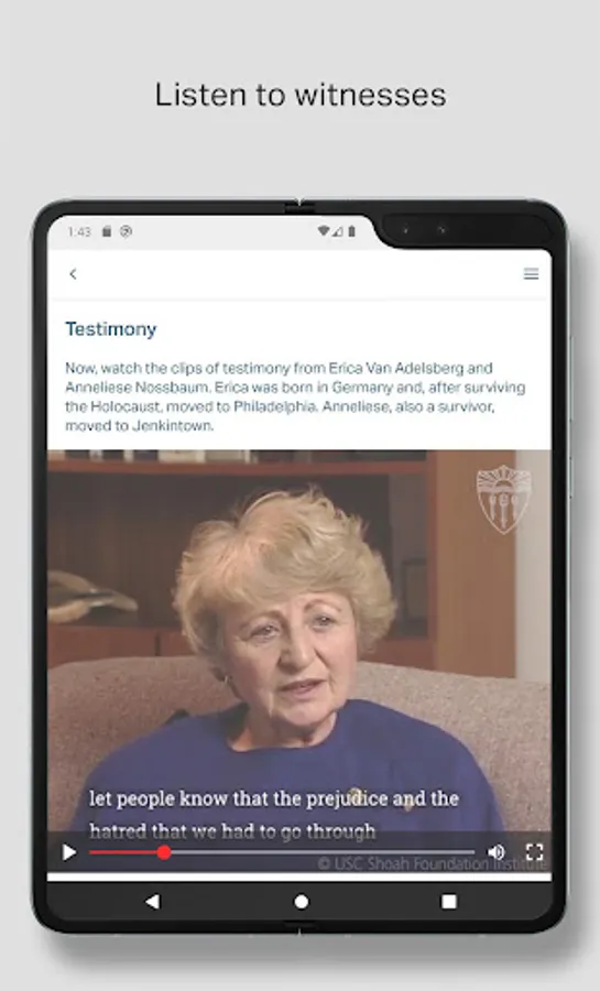 IWalks are carefully curated by USC Shoah Foundation’s team of educators and scholars which help contextualize and humanize the history at sites of memory by using testimony, photographs and maps. The result is a unique multimedia experience that provides visitors a personalized learning experience at sites of memory around the world in multiple languages.