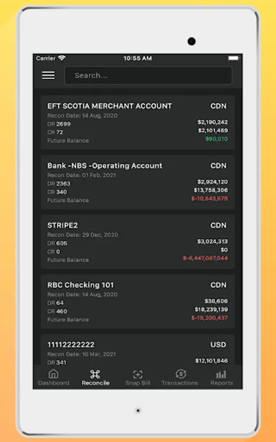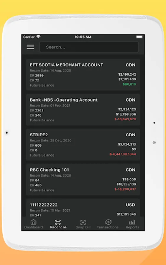 Perform bank reconciliation: view all your account balances including bank balance and uncleared transactions.