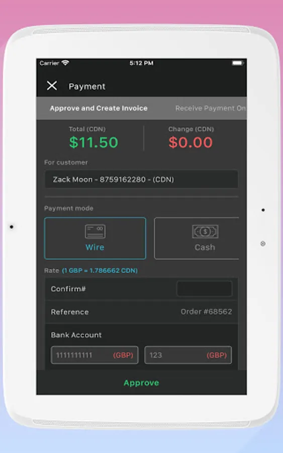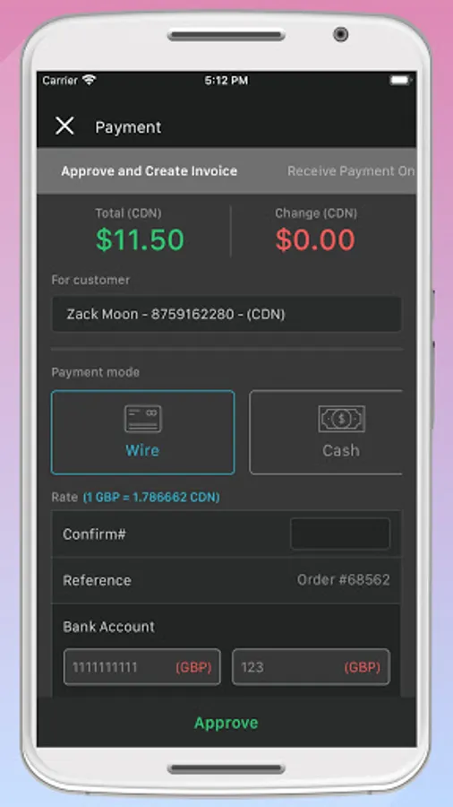 Save Order, Approve Order, Create Invoice.