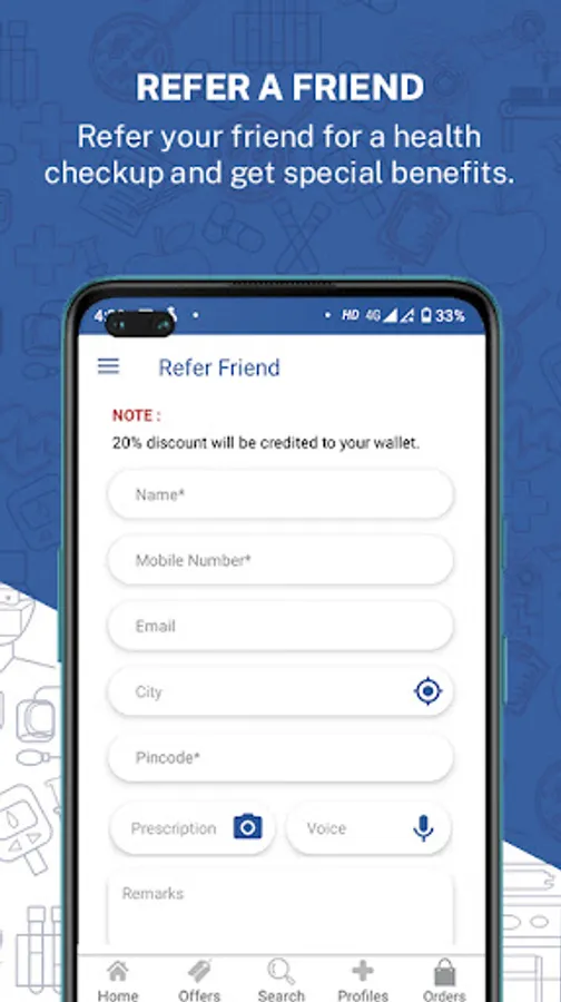 Refer a friend to ThyroApp for a health checkup package or blood tests by sharing your referral code. Enjoy 20% cashback in your Thyromoney Wallet upon referral. Avail the cashback credits to book any lab tests or full body checkup profiles. Go ahead and give your friend the gift of wellness.