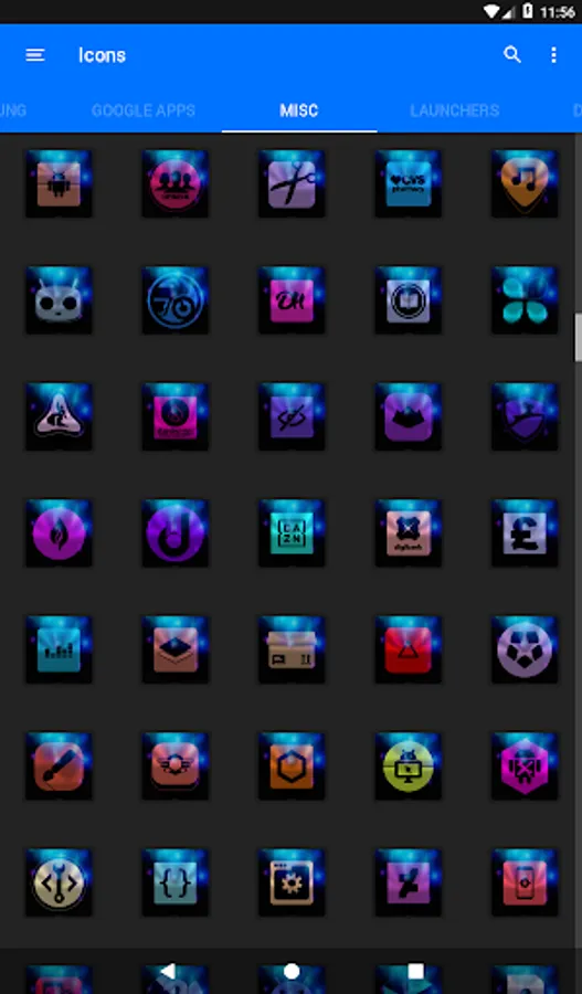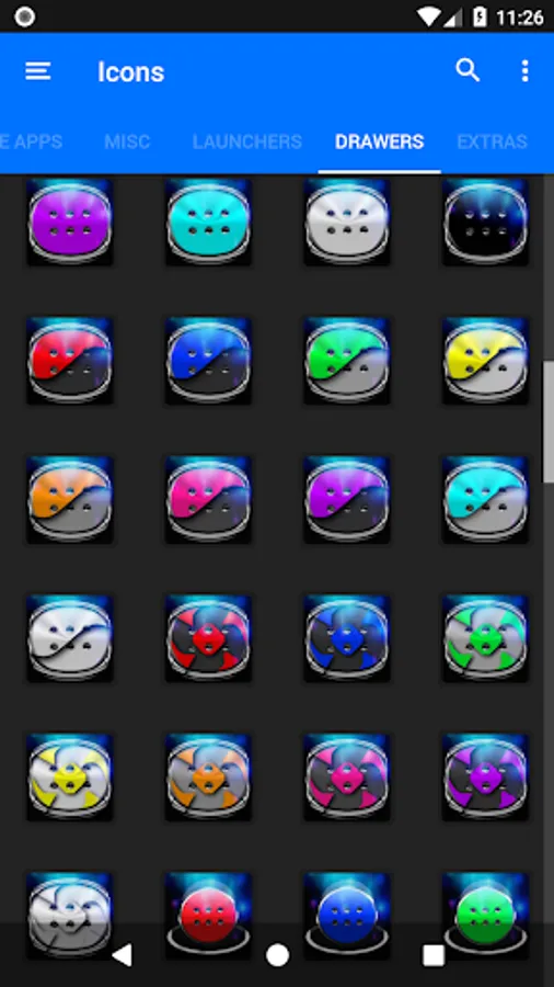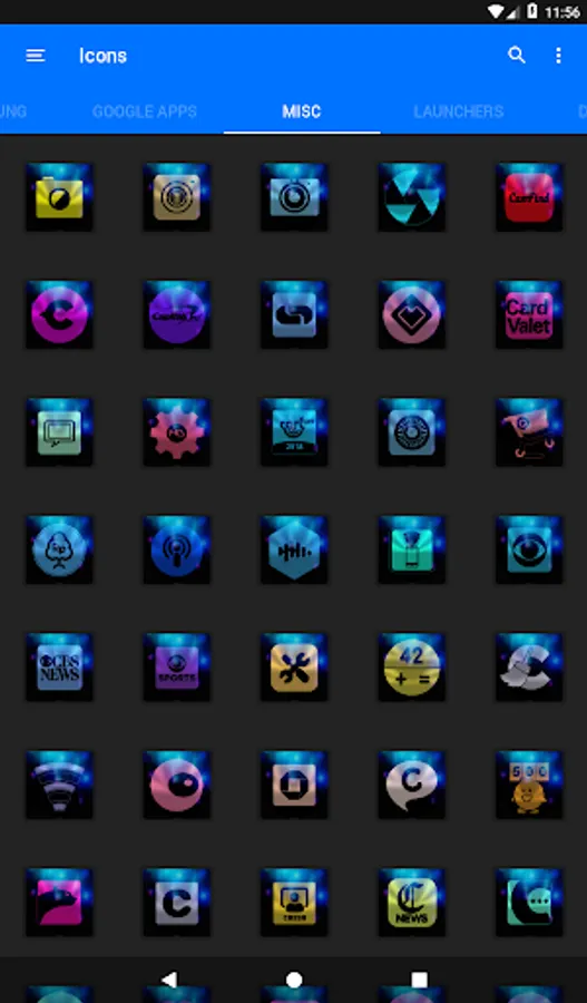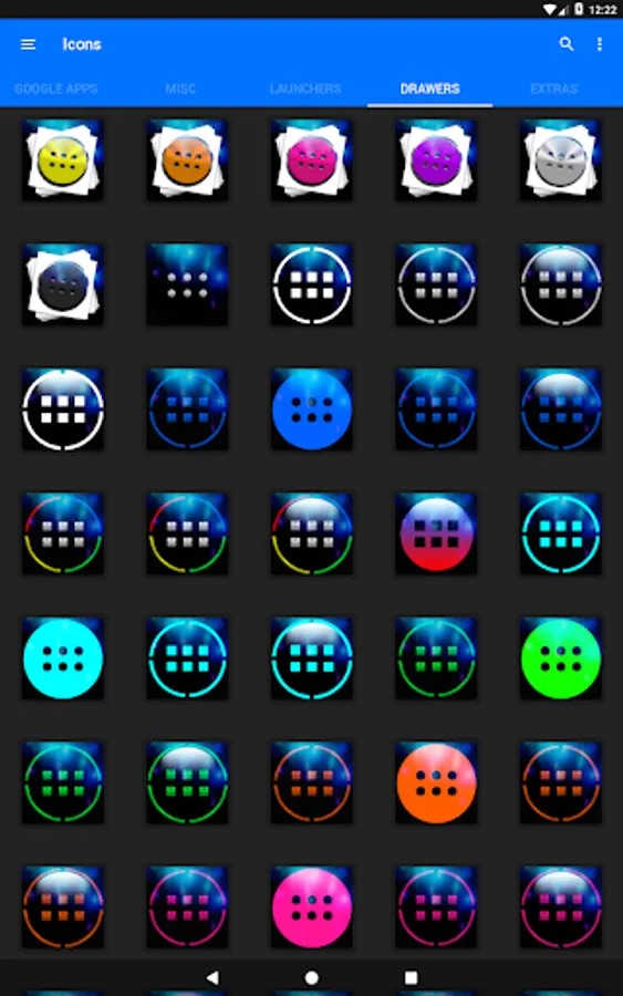 Icon Pack contains 8000+ HD Icons for mobile phones and tablets, tap on "See More" at the bottom of the page or search for "Ronald Dwk" for more icon packs, there are over 300 icon packs both free & paid to choose from in different colors, shapes and designs. Enjoy